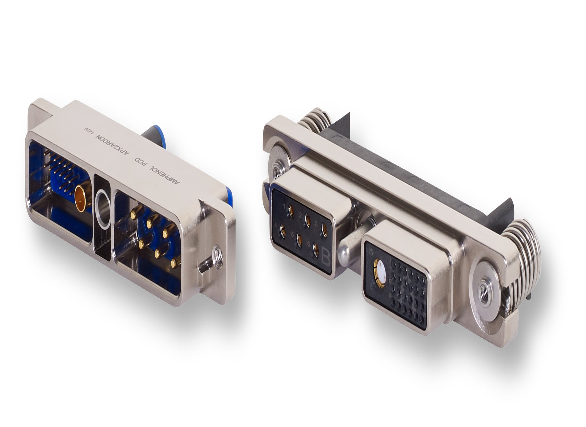 APEX is a modular connection system compliant with the EN4644 technical specification. Plug and socket housings are constructed from a single piece of high-quality aluminum. Precision manufacturing and overmolding technology ensure a lifetime of reliable operation. Typical applications include vane drives, power generation and control, Ethernet distribution networks, electronic load management systems, and galleys.