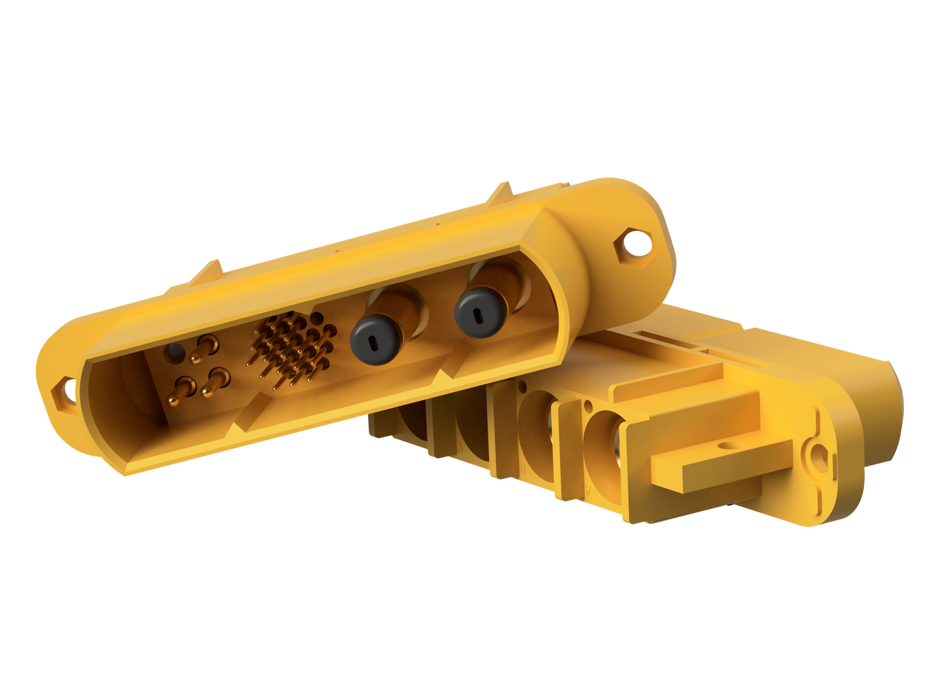 Great Golden heavy-duty power connectors offer a modular rectangular design with up to 256 configuration options for high-performance power and signal control. With current ratings ranging from 5A to 200A and operating temperatures from -55°C to +125°C, they are ideal for use in electric vehicles, military systems, aerospace, computing, industrial equipment, and test applications.